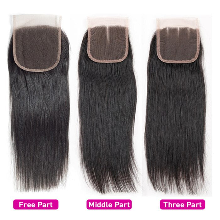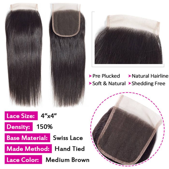 4x4 Transparent Lace Closure Straight Human Hair Closure Natural Black Hair