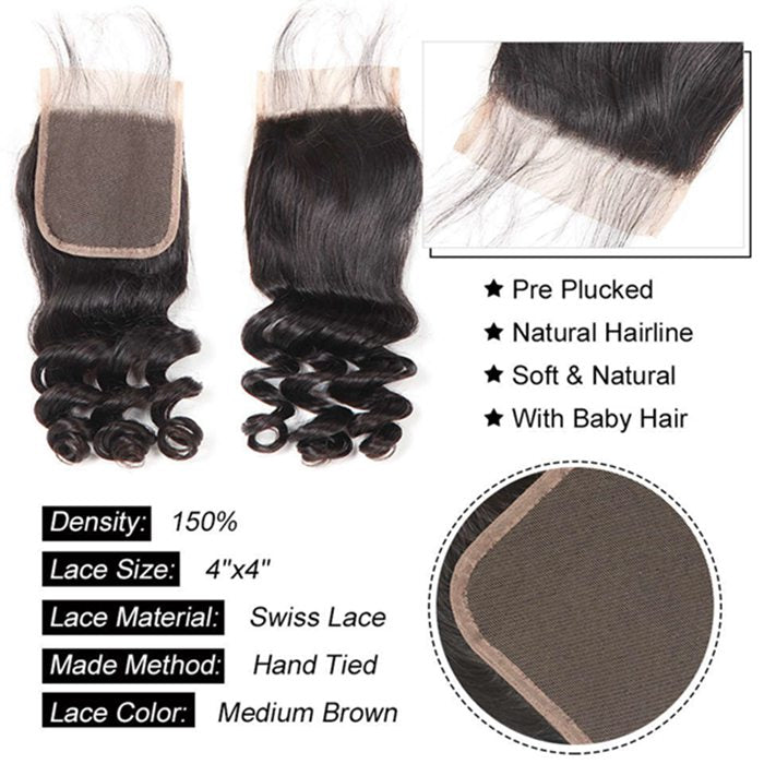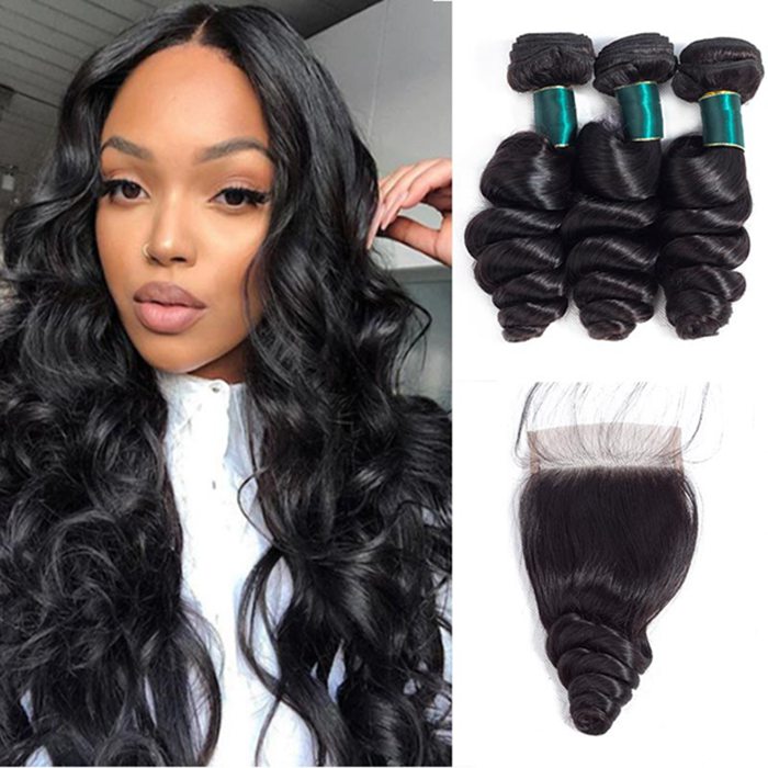 Loose Wave Hair 3 Bundles With 4x4 Lace Closure Best Virgin Human Hair